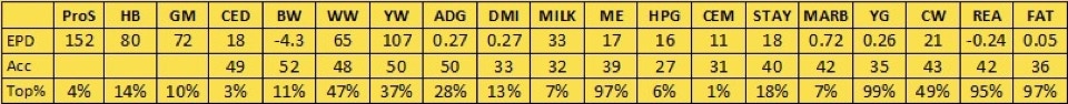 E40 is a granddaughter of R31 above and sired by Deep End. Her dam B97 is also profiled further down the page. She is a dark red, large framed cow with growth at the top of the breed. She has done a great job raising calves (as evidenced by her 107 MPPA), including her first calf, G12 who was easily the most impressive heifer we had that year. E40 has also done a great job getting bred in the first cycle every year just like her mother. She has been flushed to Bieber Blue Chip H302.